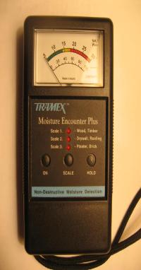 The Tramex Moisture Encounter Plus is the workhorse in the inspection industry. No qualified inspector would leave home without this tool or one similar to it. This allows the inspector to measure the moisture levels at and around typical high moisture areas such as tub and shower surrounds, under sinks, flooring, old stains, etc. This is a non-evasive tool leaving no marks. << |