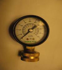 Water pressure gauge used to determine acceptable plumbing psi range (between 45 and 60 psi). << |