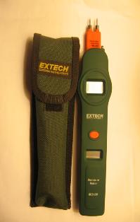 The Extech Moisture meter is used to measure moisture behind exterior walls such as stucco and synthetic stucco. One drawback is it requires that small holes be drilled into cladding material. << |